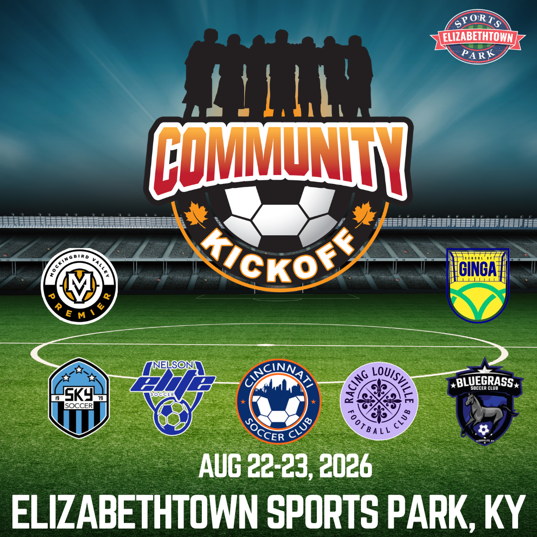 The Community Kickoff provides teams with an early fall tournament at the perfect place to play, the beautiful Elizabethtown Sports Park. It’s an opportunity for players, coaches, and parents to spend time together on and off the field, creating team bonds that lead to a great soccer year. Each team is guaranteed at least 3 games and an amazing experience on and off the field. Join us for the Community Kickoff 2024!