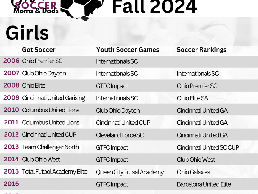 On the girls’ side, Internationals SC, Club Ohio Dayton, and Ohio Premier (OP) continue to show their strength. These clubs, known for their consistent development and competitive edge, once again hold top spots in multiple age brackets. Each of these teams has a rich history of excellence, making them the teams to watch as we enter the final months of the fall season.
