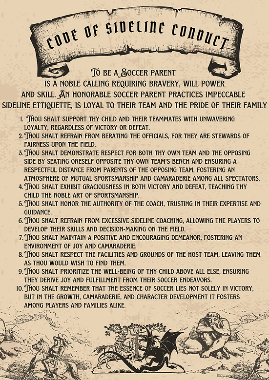 So, the “Etiquette” I share may not be a rule on every field or if it is a rule it may not be enforced to the letter of the law but it is by all standards the generally accepted way parents should behave on a sideline. Just like holding a door open for the person behind you or not peeing on the seat is considered polite so is behaving civil on a sideline.
